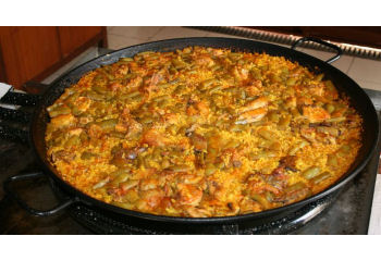 La ricetta dell'originale Paella a la valenciana – sebbene le varianti siano ormai innumerevoli. Va cotta in un tegame dal fondo spesso, o comunque...particolare.